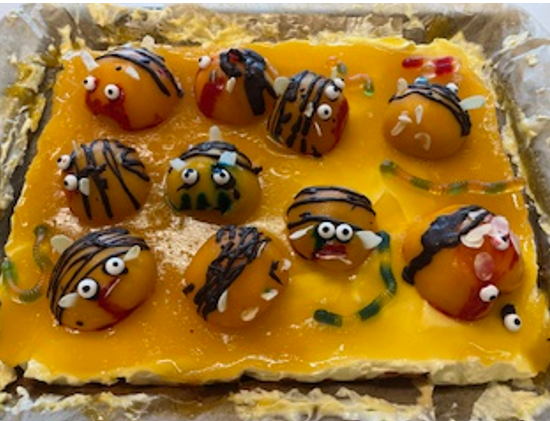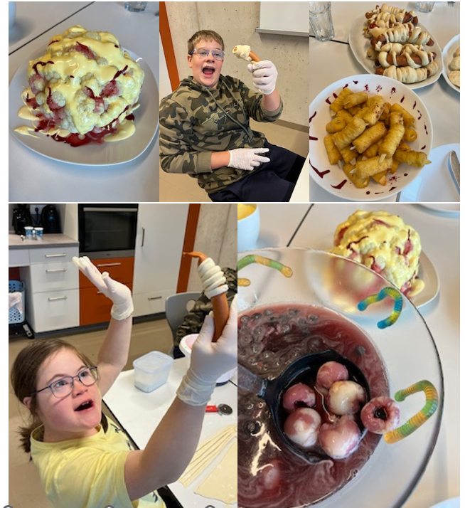Die Klasse GE 8b hat zu Halloween ein Menü gezaubert, das selbst Monster wachkitzelt. Auf dem Tisch landeten warme Schrecklichkeiten wie frisches Hirn, knusprige Mumienwürstchen, zarte Fingerspitzen, Glubschaugensuppe und der Horrorbienenkuchen als süßes Gänsehaut-Dessert. Die Schülerinnen und Schüler haben tapfer serviert, gelacht und dabei gelernt, wie man aus einfachen Zutaten eine schaurig-schöne Halloween-Show zaubert.